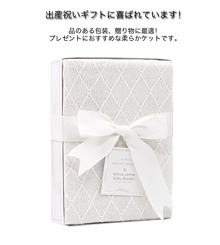 Manhattan Kids 赤ちゃん ブランケット レーヨン/コットン製 出産祝い ベビー バスタオル 夏用 冬用 通気 キッズ 寝具 新生児 綿50% 竹繊維50% 毛布 箱入り 76cm×102cm (菱形/ホワイト)