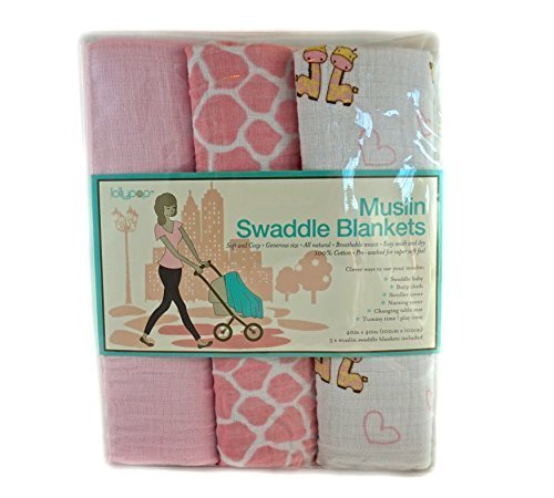 Lollypop Muslin Swaddle Blankets 100% Cotton (Light Pink Giraffe) by Lollypop