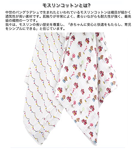 ●出産祝いギフトに喜ばれています。品のある包装、贈り物に最適!●通気性があり快適で赤ちゃんのお肌にも安心。軽くて柔らかいモスリンは通気性が高く、適度な温度を保つことができます。●耐久性が強く、使えば使うほどお肌になじみます。モスリンコットンは耐久性の強い素材でお洗濯の度に柔らかく、肌触りが良いという特性があります。●柔らいながらも耐久性が強い。デリケートでありながら長持ちするモスリンの織り目が、自然な伸縮性に凄れているので、赤ちゃんを締め付け過ぎず、適度な遊びをもたせることができる最適なおくるみです。●1枚で何役もこなす優れもの、非常に多くの用途。大判なのでおくるみとしてだけではなく、授乳ケープ、バスタオル、ブランケット、ベビーカーの日よけ、吐乳予防マット、オムツ替え時のシートとして、使用していただけます。