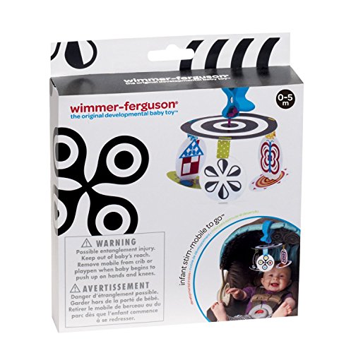 The beloved Infant Stim-Mobile is now available on-the-go! We’ve turned our award winning mobile into a compact, easy to attach travel toy. The Instant Stim-Mobile To Go features 3 reversible, visually engaging cards that display high-contrast images and encourage pre-reaching movement. Attaches easily to most strollers, car seats, and infant carriers with a sturdy, colorful plastic clamp. Wimmer-Ferguson toy graphics and designs are based on scientific research of visual development in early infancy. Each Wimmer-Ferguson toy is designed to engage baby from birth, providing playful opportunities to practice developmental skills. All toys feature high contrast graphics to encourage early visual activity and graphics are repeated from toy to toy to encourage “pattern recognition”. In addition to visual development, the Wimmer-Ferguson collection by Manhattan Toy also offers a variety of toys with features to benefit other key areas of an infant’s developmental growth including: eye-hand coordination, gross motor activity, self-awareness, sense of object permanence, and experience with cause and effect. For over 30 years, Manhattan Toy has been making award winning, high quality, visually appealing toys for babies, toddlers, and kids. Manhattan Toy offers more than 500 exclusive, original product designs distributed and sold worldwide through specialty retail stores, catalogs and websites. All of our products, from the newest concepts to our time-tested classics, are innovatively designed to inspire imaginative play and delight our customers.