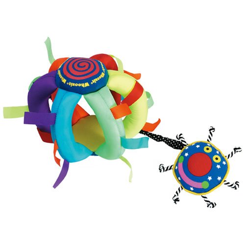 目の前のモチーフに、視界の限られた赤ちゃんが思わず『誰!?(Who is it ?)』と注目するハッキリとしたデザインが人気のフージット・シリーズ。 赤ちゃんの全身運動を促す、空をモチーフにしたカゴのような布製ボールです。 柔らかい布製なので、ギュッと握ると変形し、手を離すと元の形に戻ります。 ボールを握ったり、潰したり、投げたり、追いかけたりして遊ぶことで赤ちゃんの全身運動を促します。 握りやすい形の柔らかいポールのサイドには引っ張るとブルブル振動する太陽のパーツが付いています。 たくさん付いたカラフルなフリンジを引っ張ったり、星のクッションをボールの中に入れたり出したりすることで、赤ちゃんの指先遊びにもなります。 【■お手入れ方法】 表面は水拭きできます。水拭きした後は、干して乾燥させてください。 お湯、漂白剤は使用しないでください。