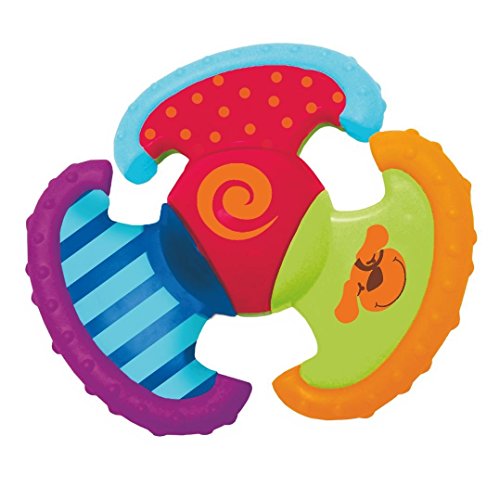 Twist, turn and discover with the Turn & Discover infant toy. This playful toy supports fine motor development through every twist and turn. This colorful plastic toy combines silly animal faces and vibrant color patterns. Keep baby happily entertained with the Turn & Discover plastic teether. For over 30 years, Manhattan Toy has been making award winning, high quality, visually appealing toys for babies, toddlers and kids. Manhattan Toy offers 500 exclusive, original product designs distributed and sold worldwide through specialty retail stores, catalogs and websites. All of our products, from the newest concepts to our time-tested classics, are innovatively designed to inspire imaginative play and delight our customers.