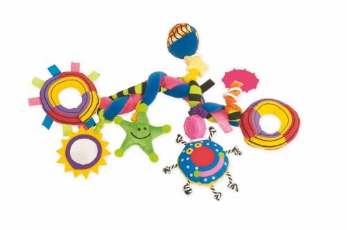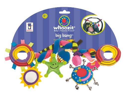 The Whoozit Big Bang features a bendable structure with many playful attachments that dangle from the Big Bang toy by stretchy elastic cords. Attachments include a Whoozit character, rattle ball, sun mirror, teether, and friendly star. It features soft open ends and a flexible structure that can be bent around most anything, including most strollers and car seats. This portable, flexible travel toy will keep your baby happy and busy exploring its many tactile, visual and auditory features. The classic, award-winning Whoozit collection has been a perennial favorite for parents and little ones alike for over 15 years. This unique toy line featuring Whoozit, an adorable blue character with a wide, pink smile and big red nose, brings joy and excitement while fostering fundamental learning skills in baby’s developing mind, body, and senses. Whoozit characters and their big friendly smiles are instantly recognizable and truly are baby’s favorite friend. For over 30 years, Manhattan Toy has been making award-winning, high quality, visually appealing toys for babies, toddlers and kids. Manhattan Toy offers more than 500 exclusive, original product designs distributed and sold worldwide through specialty retail stores, catalogs and websites. All of our products, from the newest concepts to our time-tested classics, are innovatively designed to inspire imaginative play and delight our customers.
