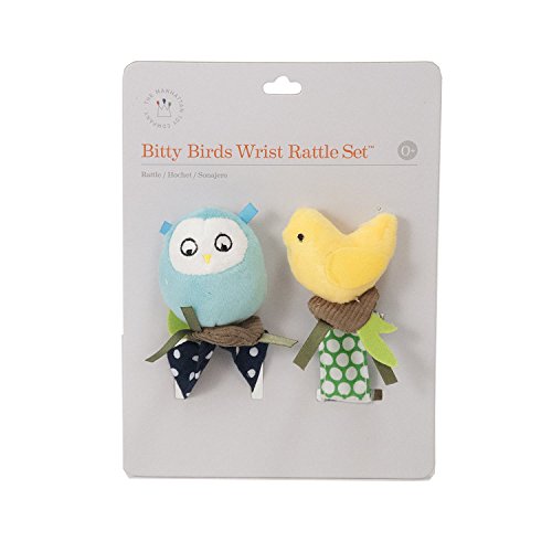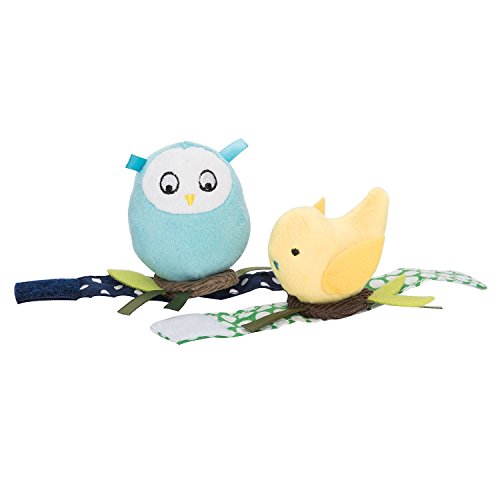 - Wrist rattle set includes one blue owl rattle and one yellow song bird rattle