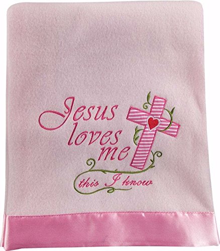 Made of soft cozy fleece;Measures 30 x 40 inches;Embroidered Jesus Loves Me This I Know text with cross and vine emblem