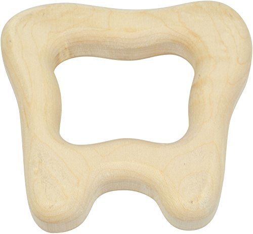 Our natural teethers are the perfect answer to concerns over toxic chemicals and finishes. Sold as a singles, this maple teether is the shape of a a tooth. Measuring about 3 3/4" from top to bottom and 3 1/2" across the top and 3/4" thick and are only available unfinished. Each is rounded and sanded smooth to the touch and to the mouth and gums. Large enough for babies to get their hands and arms around and small enough to be comfortable in the mouth. Comes shrink wrapped with care instructions.