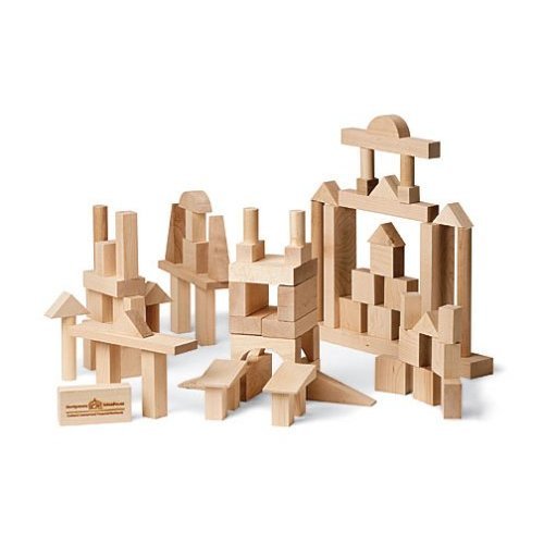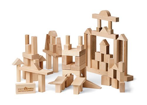 Montgomery Schoolhouse building blocks. Maple building blocks in all the standard shapes you expect to see. Advanced Builder has 78 pieces with 17 different shapes.