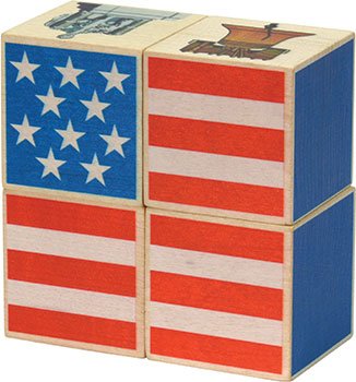 このfour-block装飾されたセットは、きっとあなたの愛国的な側を。含むすべての両側にブロックのamerican-themed 7 Nationalランドマーク。スタック時に言って片側に米国で、もう1つのフラグを表示。また、ミックスとことすることができます。国のプライドを表現には、1000を超える組み合わせがあります。4つのHardwoodメープル1 3 / 4 "キューブのデザインはプリントで、毒性のないインクを使用しています。はシュリンクラップ。