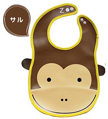 (マーチェル) Marchell 防水 スタイ よだれかけ ベビー キッズ エプロン 2 way ビブ アニマル 柄 食べこぼし 防止 ポケット 付 プレゼント にも最適 (ブラウン(さる))