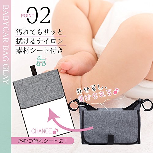 - 【取り外し可能なおむつ替えシート付属】外出先でのおむつ替えに便利なおむつ替えシート付属。ベビーカーバッグの外面にスナップで取り付けられ、不要な時は外すこともできます。汚れてもさっと拭けるナイロンコーティング素材でいつでも清潔におむつ替えができます。