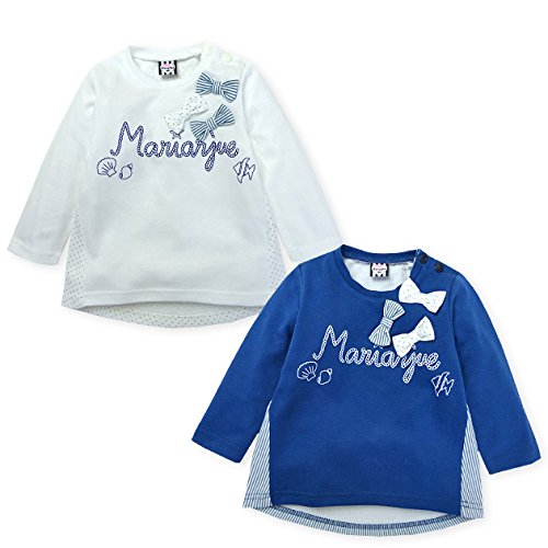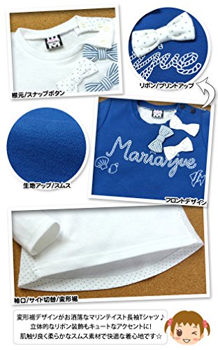 ベビー服 女の子 Tシャツ 長袖 スムス素材 スナップボタン マリンテイスト リボン 変形裾 女児 ベビー (1.ホワイト/95cm)