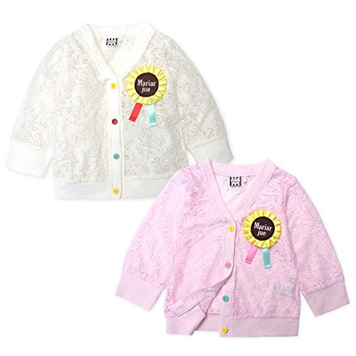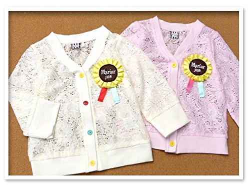 (ピンク/95cm) ベビー服 女の子 アウター カーディガン 長袖 レース ロゼットリボン装飾 女児 ベビー