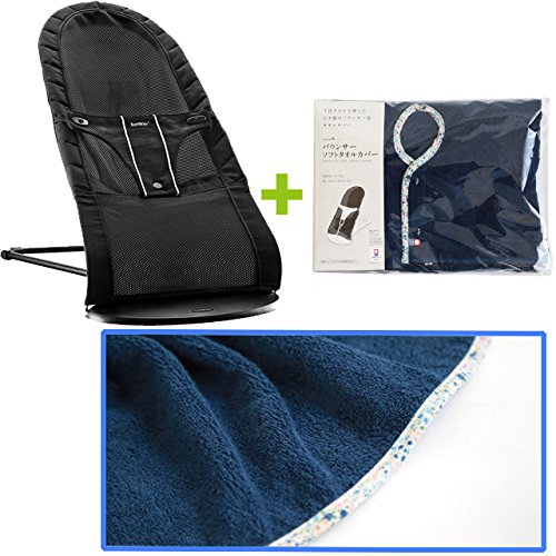 【今治タオルブランケットセットFLW】babybjorn(ベビービョルン)ベビーシッターバランス メッシュ(エアー)ブラック(バウンサーカバーフラワーブルー)