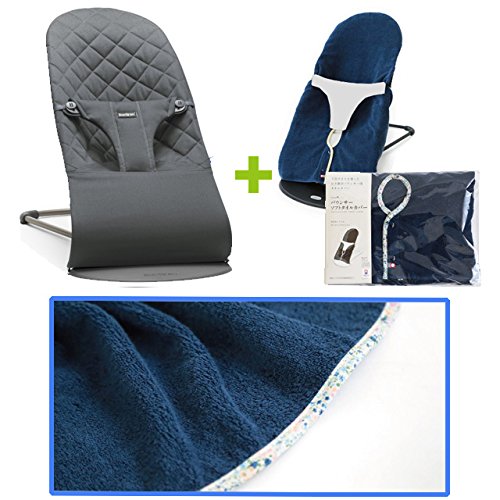 【今治タオルブランケットセットFLW】babybjorn(ベビービョルン)バウンサー Bliss アンスラサイト(バウンサーカバーフラワーブルー)