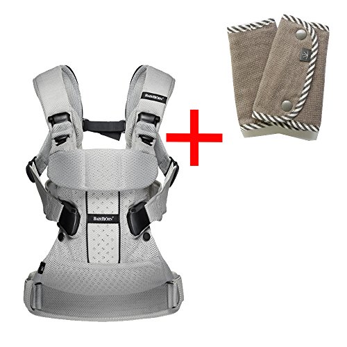 【サッキングパッドセット】BabyBjorn(ベビービョルン) ONE+ Air シルバー+ 今治サッキングパッド グレーストライプ