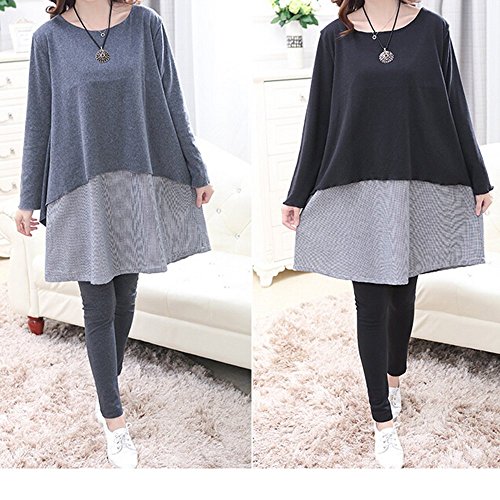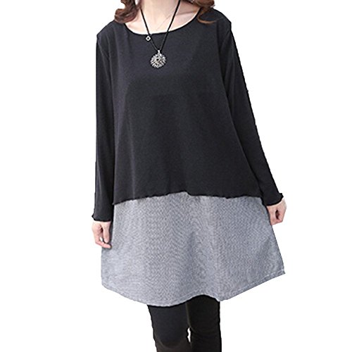 (マーシェル) Marshel マタニティ 重ね着風 長袖 チュニック トップス マタニティー服 お腹周りカバー かわいい おしゃれ 楽ちん ブラック L