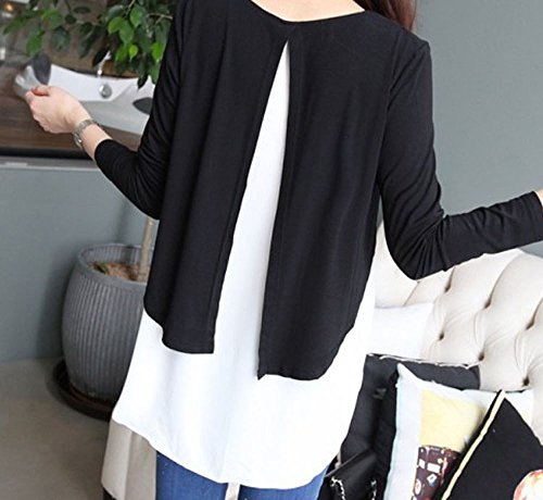 (マーシェル) Marshell 授乳服 産前 産後 妊婦用 レイヤード 重ね着風 マタニティ トップス 授乳口付 ブラック×ホワイト M
