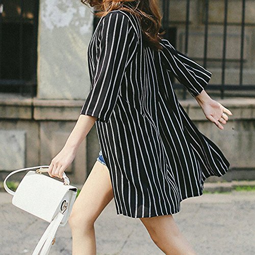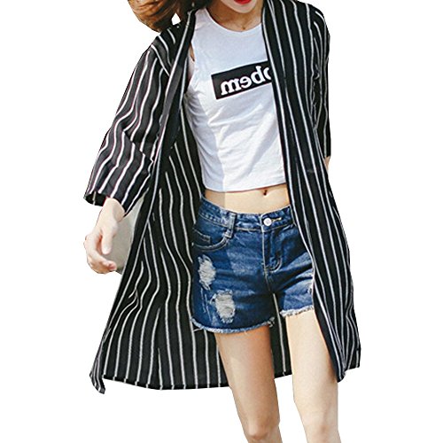 (マーシェル) Marshel マタニティ ロング カーディガン 軽やか素材 シフォン 産前 産後 長く使える 体型カバー おしゃれ 妊婦服 ブラック (ストライプ) フリーサイズ