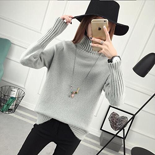 - 首元まで暖かいオフタートルデザインのニットトップス。着丈も長く、外出時も体を冷やしません。産後も使えるデザインのシンプルなニットチュニックです。