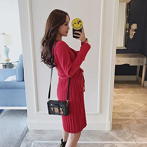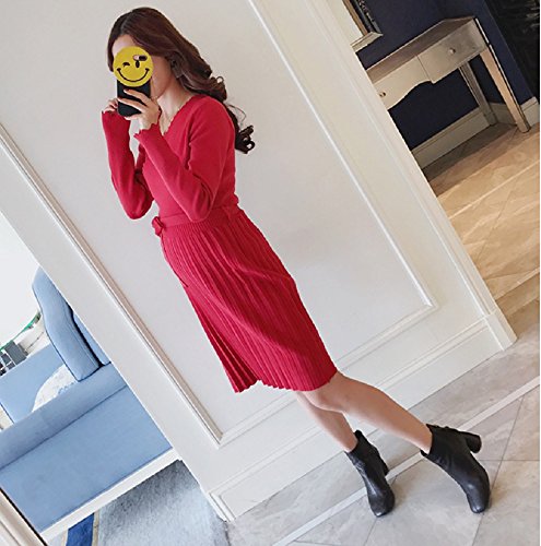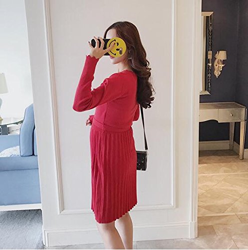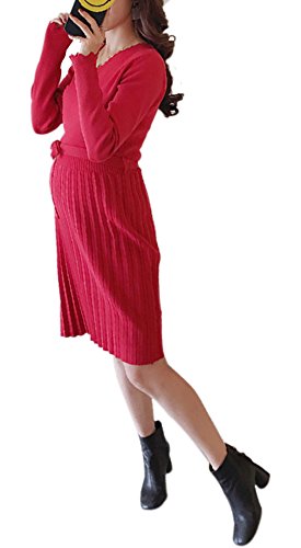 Marshel マタニティ ニット ワンピース 【 赤 レッド ニットワンピ ドレス 授乳服 授乳ワンピース 授乳口 産前産後 フリーサイズ 】 長袖 ロング 妊娠 マタニティワンピース マタニティ服 レディース 妊婦用 出産準備 出産祝い
