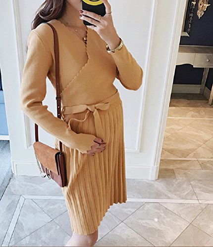 - 産前産後で使えるニットワンピース。胸元がカシュクールデザインなので、授乳が出来るデザインです。体を締め付けずに、おしゃれな雰囲気になり、ドレスとしてもお使えいただけます。