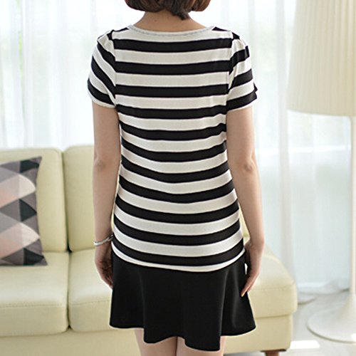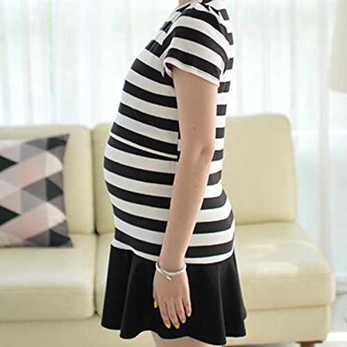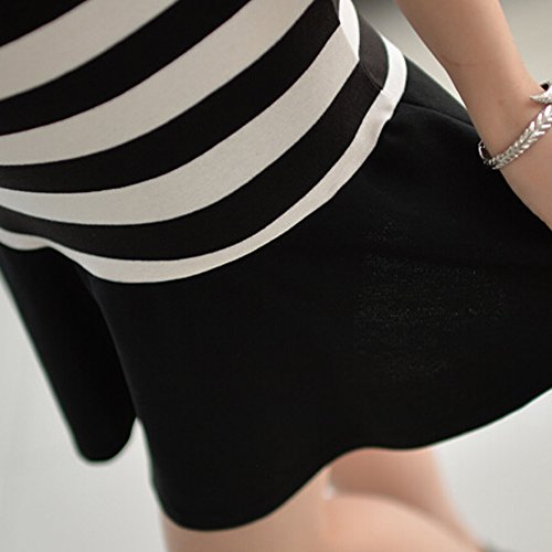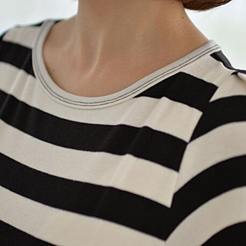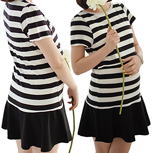(マーシェル) Marshel 授乳口付 ミニ ワンピース ボーダー かわいい カジュアル マタニティー服 授乳服 楽ちん Lサイズ ブラック×ホワイト