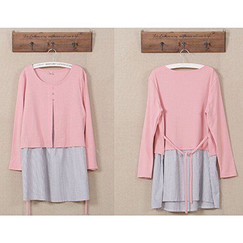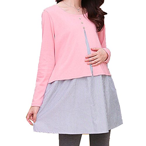 (マーシェル) Marshel マタニティ チュニック カジュアル マタニティー服 お腹周りカバー 重ね着風 ピンク L
