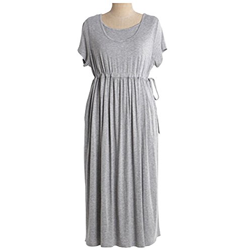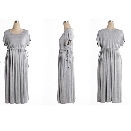 (マーシェル) Marshel マタニティ マキシ ロング ワンピース 半袖 マタニティー服 楽ちんワンピ ライトグレー フリーサイズ