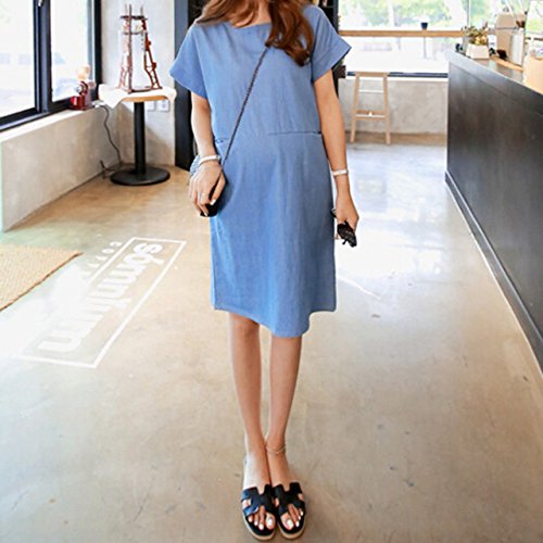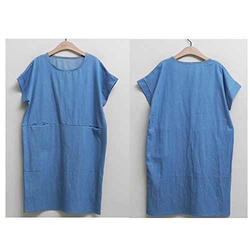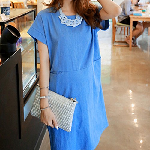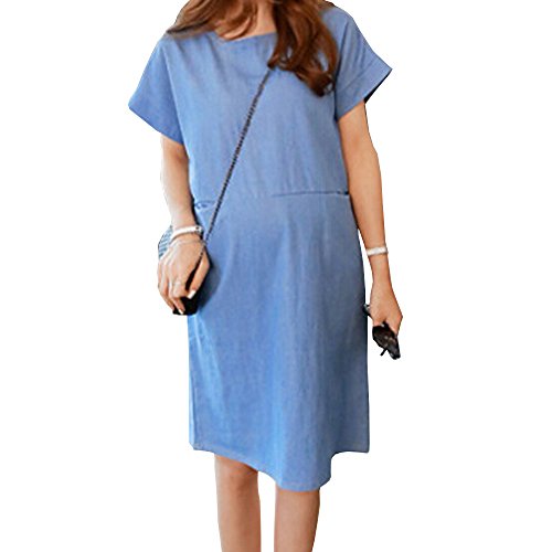 (マーシェル) Marshel マタニティ チュニック 半袖 デニム 産前 産後 長く使える おしゃれ かわいい 妊婦服 ブルー XL