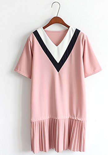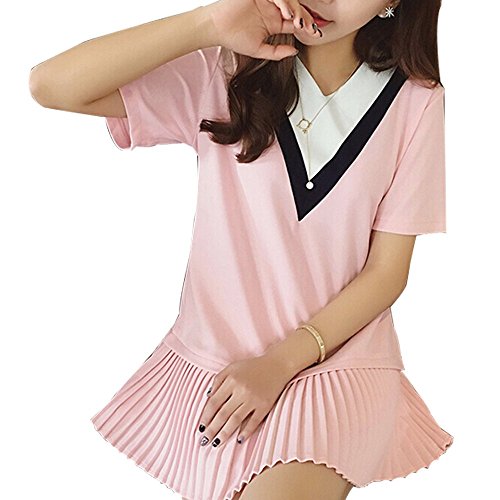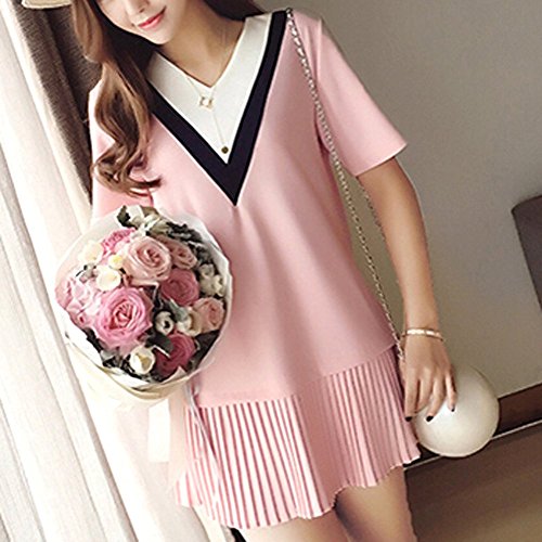 (マーシェル) Marshel マタニティ チュニック 半袖 授乳口付き アイビールック Vネック 産前 産後 長く使える おしゃれ 妊婦服 ピンク L