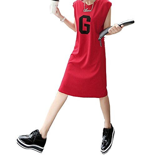 (マーシェル) Marshel マタニティ ワンピース らくちん ノースリーブ デザイン 産前 産後 長く使える 妊婦服 レッド XL