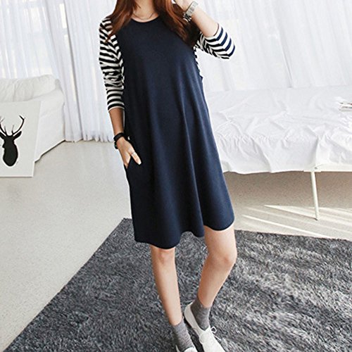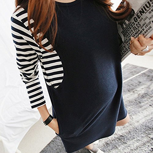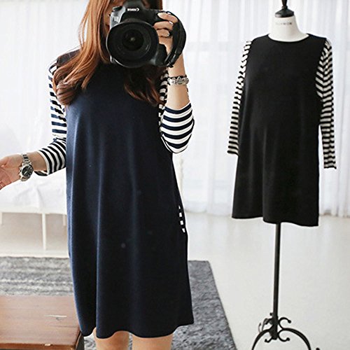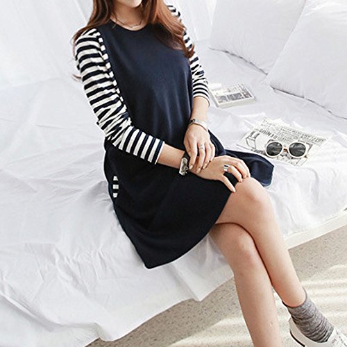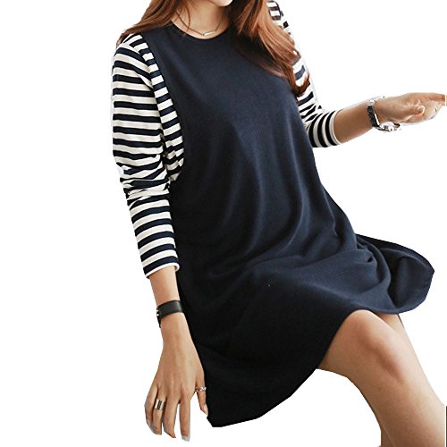 (マーシェル) Marshel マタニティ 長袖 授乳 ワンピース レイヤード風 マタニティー服 楽ちんワンピ ネイビー フリーサイズ