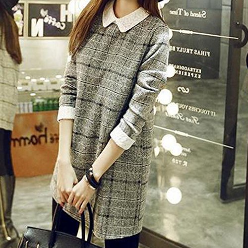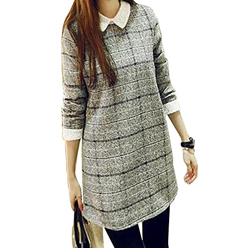 (マーシェル) Marshel マタニティ ワンピース チュニック 長袖 おしゃれ チェック 産前 産後 長く使える 妊婦服 グレー XL