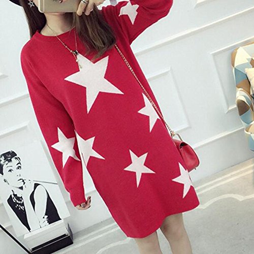 (マーシェル) Marshel マタニティ ワンピース ニット 星柄 チュニック 秋 冬 長袖 カジュアル おしゃれ 産前 産後 長く使える 妊婦服 レッド M