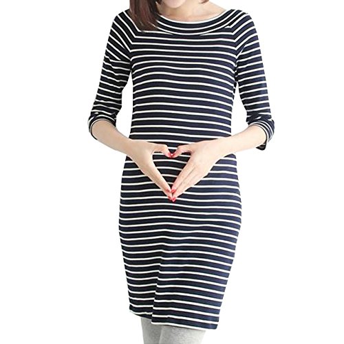 【アウトレット】 (マーシェル) Marshel マタニティ ワンピース 春夏 ボーダー チュニック 産前 産後 長く使える 妊婦服 ネイビー 【授乳口付き】