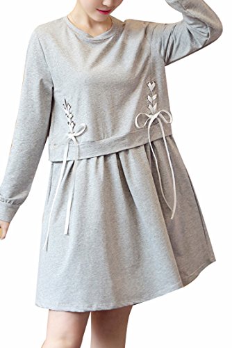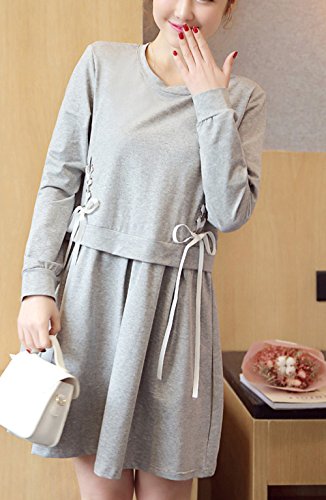 (マーシェル) Marshel マタニティ ワンピース チュニック リボン 産前 産後 長く使える 妊婦服 グレー XL