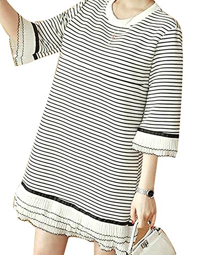 Marshel マタニティ チュニック レディース 春 フリル ボーダー 産前 産後 妊婦服 ホワイト M