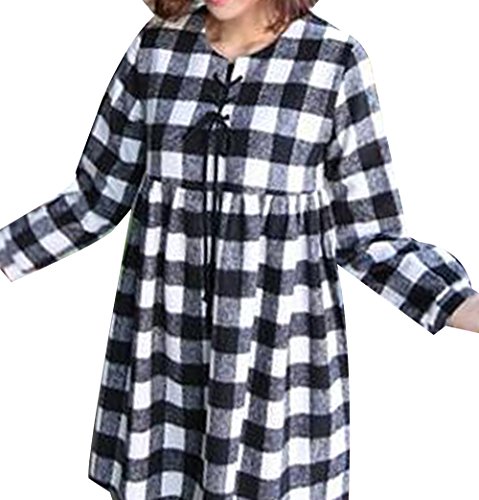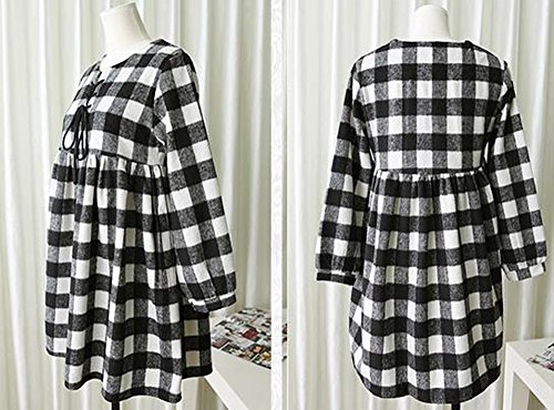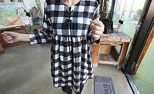 Marshel マタニティ ワンピース チュニック レディース チェック 春秋 産前 産後 妊婦服 ブラック×ホワイト L