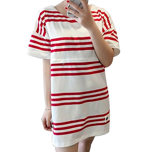 Marshel マタニティ トップス tシャツ 授乳口付き チュニック ボーダー 産前 産後 妊婦服 レッド M