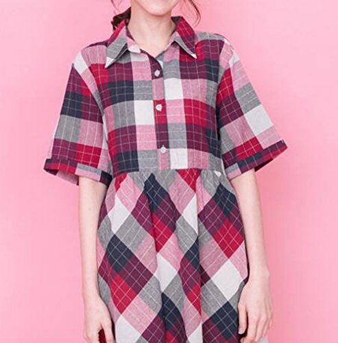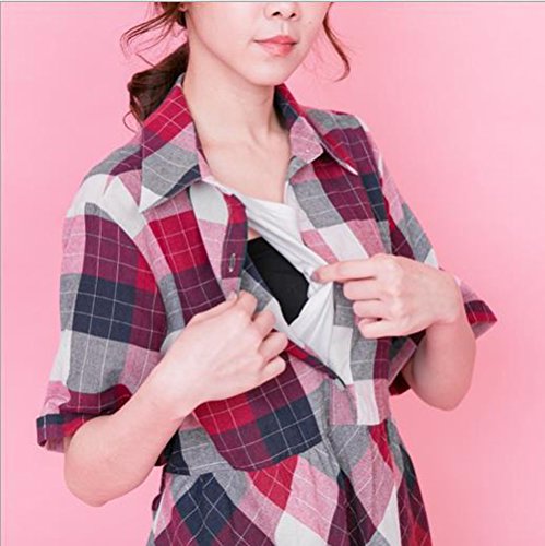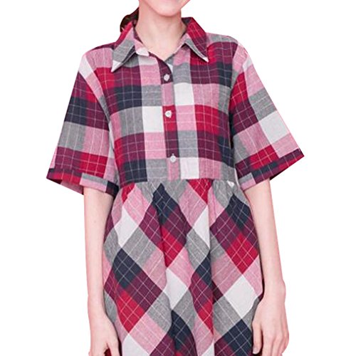 Marshel マタニティ ワンピース チュニック チェック レディース 半袖 春夏 授乳服 授乳口付き 産前 産後 レッド フリーサイズ
