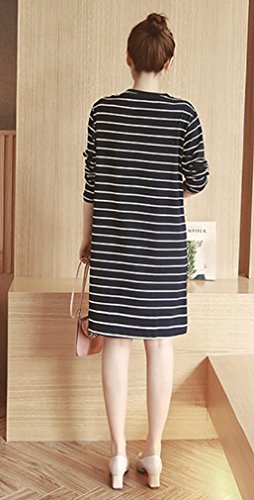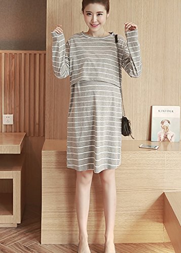 - 授乳口付きのボーダー マタニティ ワンピース。
