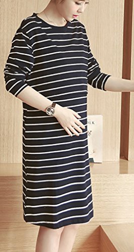 (マーシェル) Marshel マタニティ ワンピース 授乳口 秋冬 ボーダー ネイビー M 【授乳口付き】