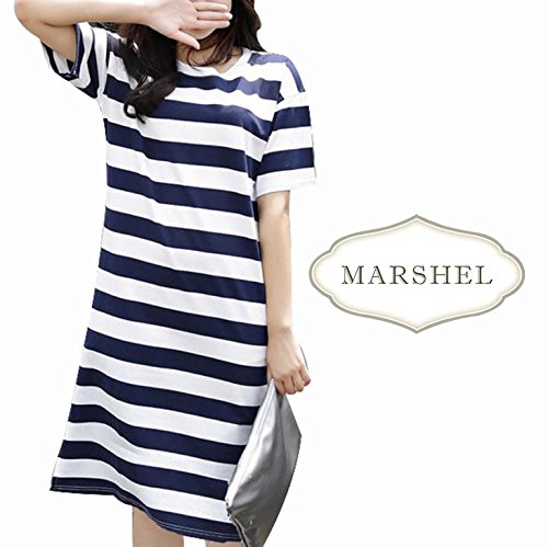 Marshel マタニティ ワンピース ボーダー柄 レディース 半袖 春夏 ネイビー L