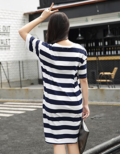 - シンプルで着心地の良いボーダー柄の半袖ワンピース。サラッとした肌触りで、暑い季節も1枚で快適に過ごせます。