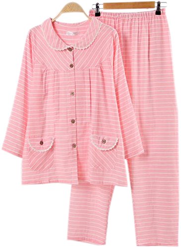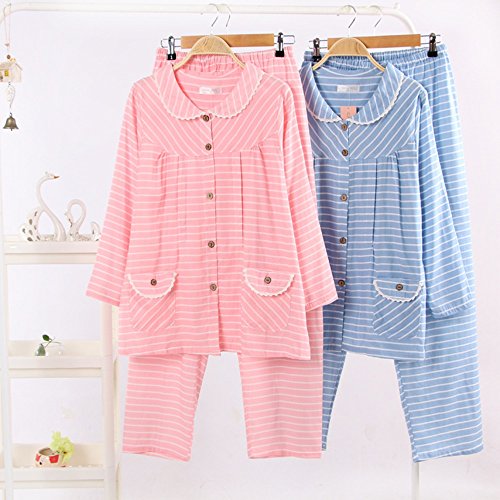 (マーシェル) Marshel レディース マタニティ パジャマ 【 ストライプ ピンク L 前開き 】ルームウェア 部屋着 かわいい 春 夏 綿