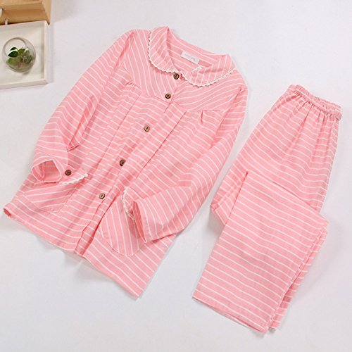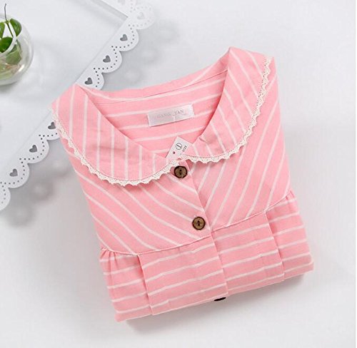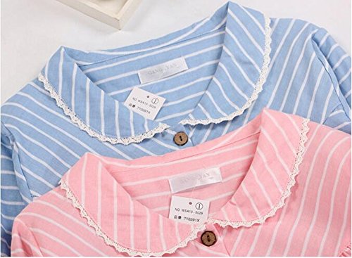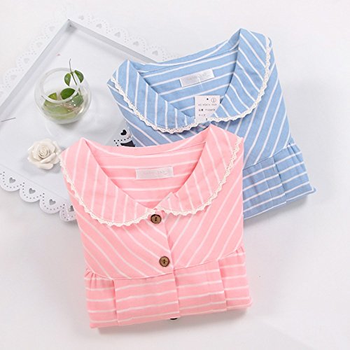 - ストライプ柄とレース衿が可愛いパステルカラーパジャマです。可愛さ満点で気分もアップします♪
