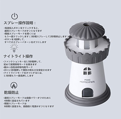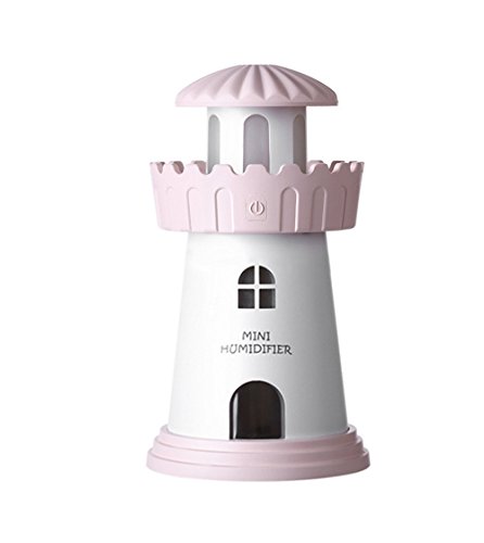 Maruen 超音波加湿器 ミニ加湿器 卓上加湿器 車載加湿器 可愛い灯台タイプ USB給電 スポットで加湿 空気を浄化する (ピンク)