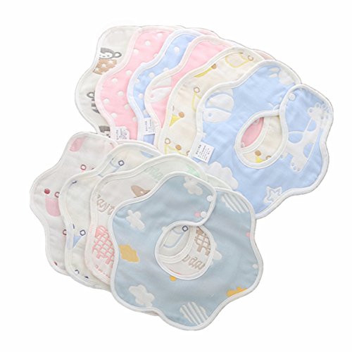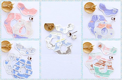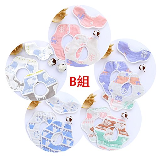 Maruen ビブ スタイ食事用防水ビブ 赤ちゃん スタイ 6重ガーゼコットン ベビー用品 快適で安全な 子供用品 柔らかい綿100% 360°回転可 出産祝い 5枚組 (B組)
