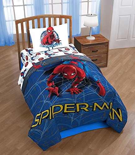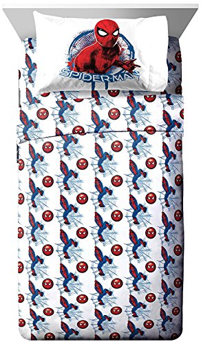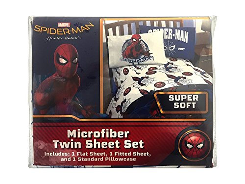 Color:Wall Crawler Transform any child's bedroom with a Marvel Spiderman 'wall crawler' super soft microfiber sheet set. This superhero bedding sheet set will make any child smile. Each 3 piece, super soft microfiber twin sheet set includes a fitted sheet, flat sheet and one standard reversible pillowcases. The bold colors and exciting design will enhance the existing decor of any kid's or toddler bedroom. Fitted sheet measures 39' x 75', flat sheet measures 66' x 96' with (1) 20' x 30' standard pillowcase. Decorative bedding features the popular Spiderman. 100% polyester. Easy care, machine wash cold, tumble dry low. Imported