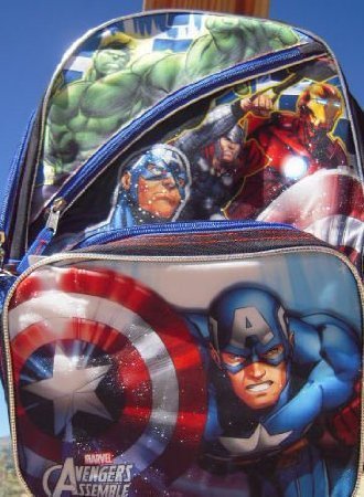 Vinyl front with Avengers Assemble screen art and logo Characters include Captain America, Iron Man, The Hulk and Thor Zippered main compartment.